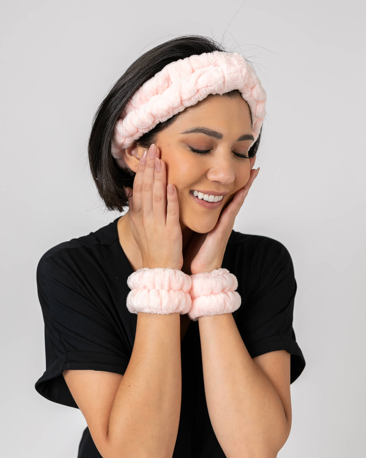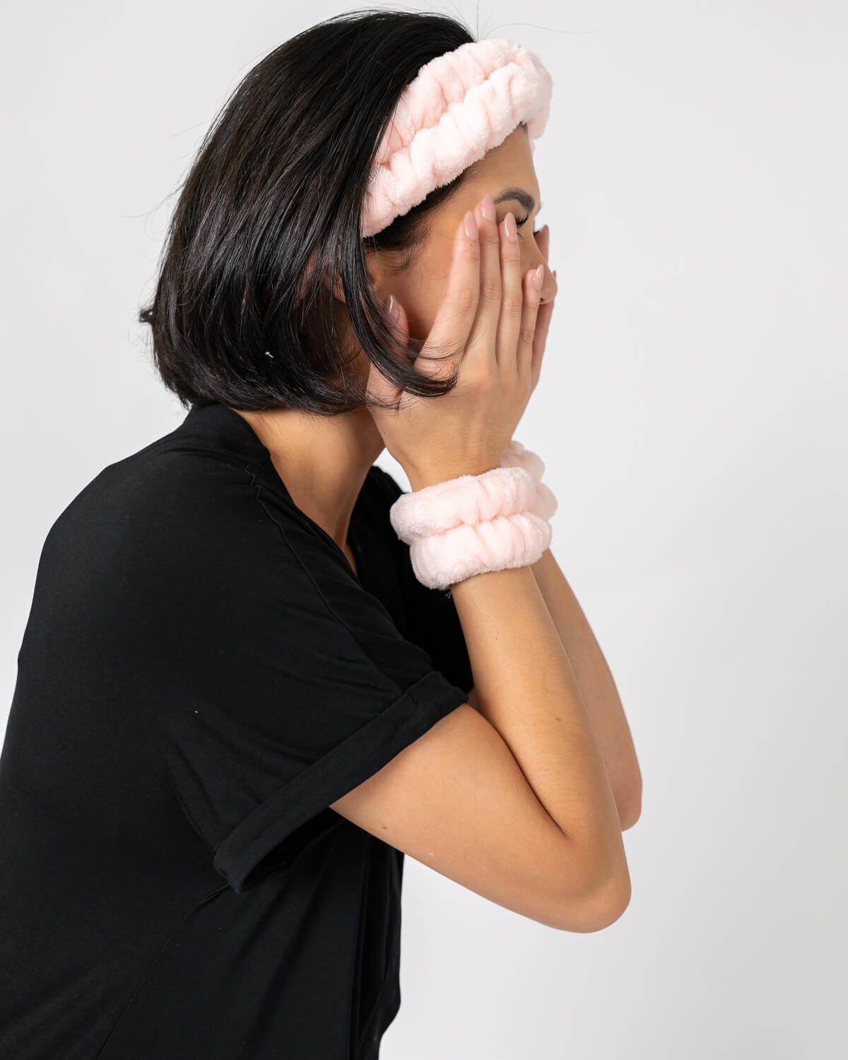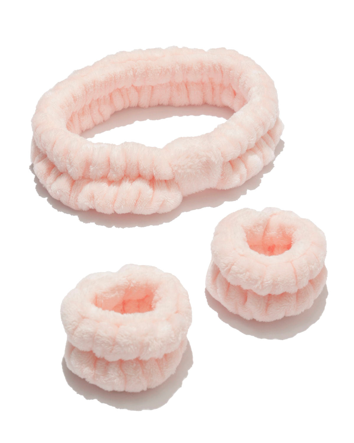 Plush Terry Cloth Pink Headband and Wristband Set - Elevate Your Self-Care Routine:
